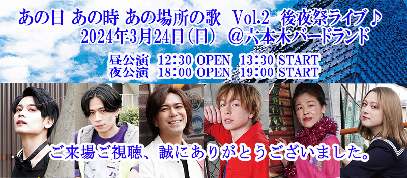 「あの日あの時あの場所の歌Vol.2」後夜祭ライブ開催決定!
