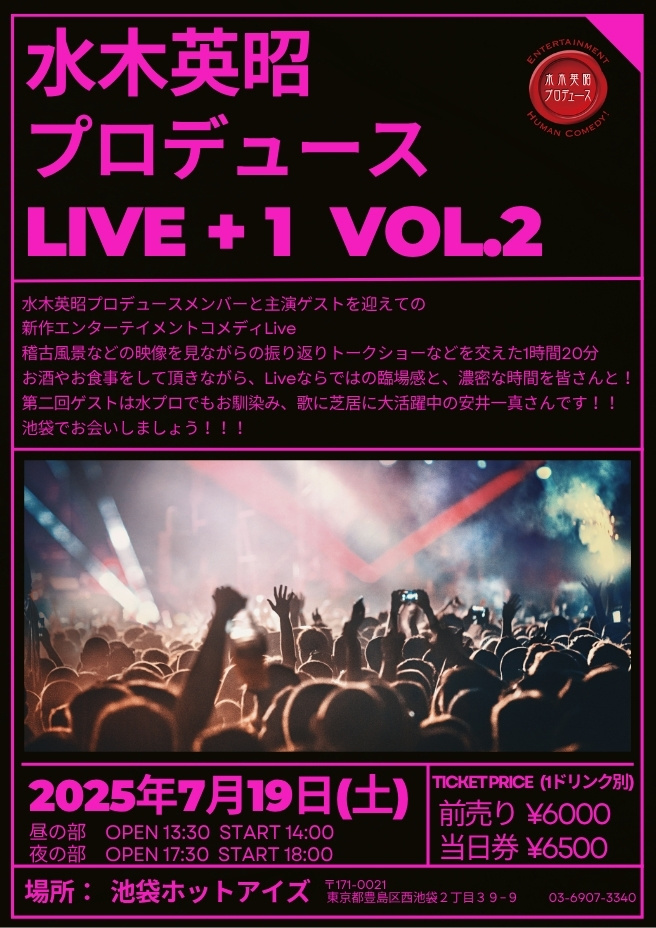 水木英昭プロデュース「Live➕1 VOL.2」開催決定!!!