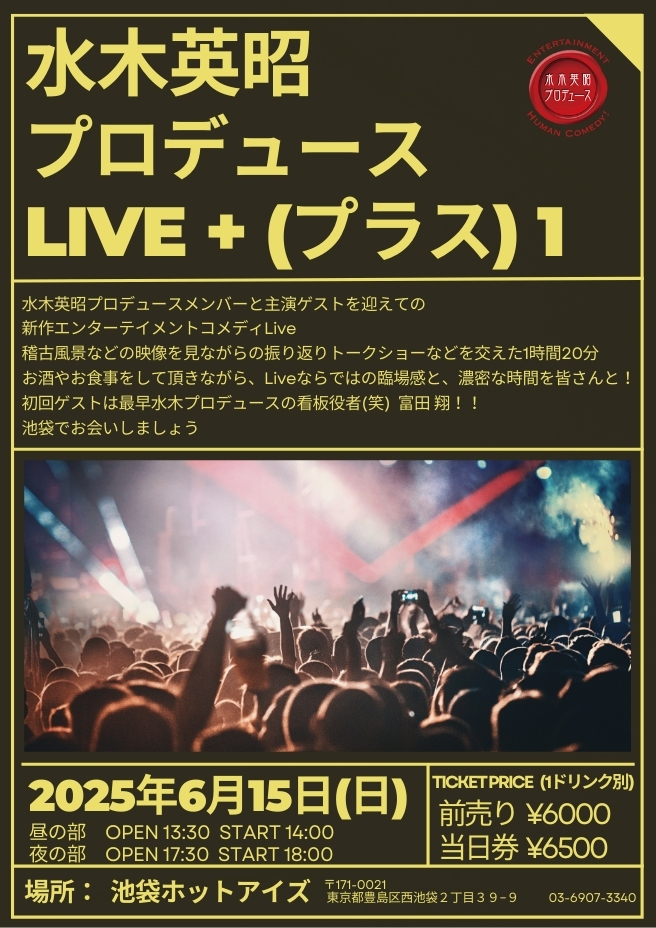 水木英昭プロデュース「Live➕(プラス)1」開催決定!!!